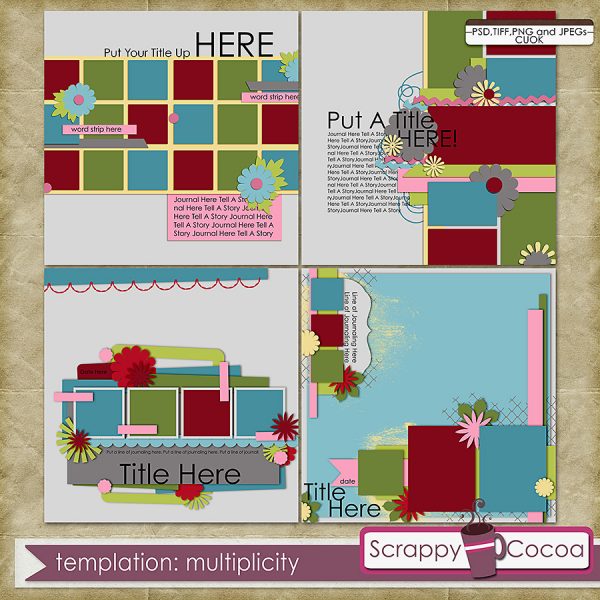 And do you Love multi-photo pages? I Do!!! Love journaling or paper blocks? Whatever you are looking for, Templation Multiplicity by Scrappy Cocoa is for you! You can do so many things with the Multiplicity templates. There is room for lots of photos or maybe you want just a few photos, so instead you make paper blocks…or journaling spaces. There are many possibilities! Want to use them again? Just flip the template for a whole new look!