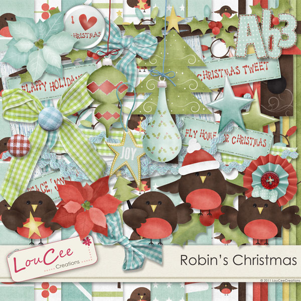 Robin’s Christmas by LouCee Creations is beautiful, fun, and definitely cute! The whole family is here waiting to grace your Christmas pages. In it’s modern colors it is very versatile and you do not need to stop at layouts, this kit is also perfect for your hybrid projects too.
