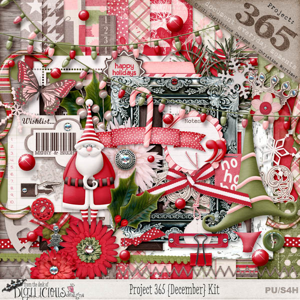 Digilicious Designs is back with her final December {Kit} Project 365 for this year – An ongoing Collection of resources to help you document your everyday moments. It’s a super cute Christmas kit with pink in it…I’m so doing the happy dance with this one because 2 years ago my daughter wore pink Christmas pjs and I’ve been wanting a Christmas kit with pink in it to scrap those picture.