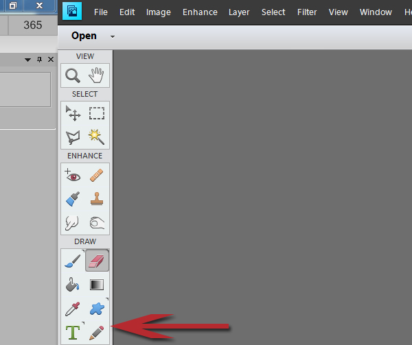 In Photoshop Elements (version 11 in the image below), the Pencil Tool is clearly visible in the DRAW options.