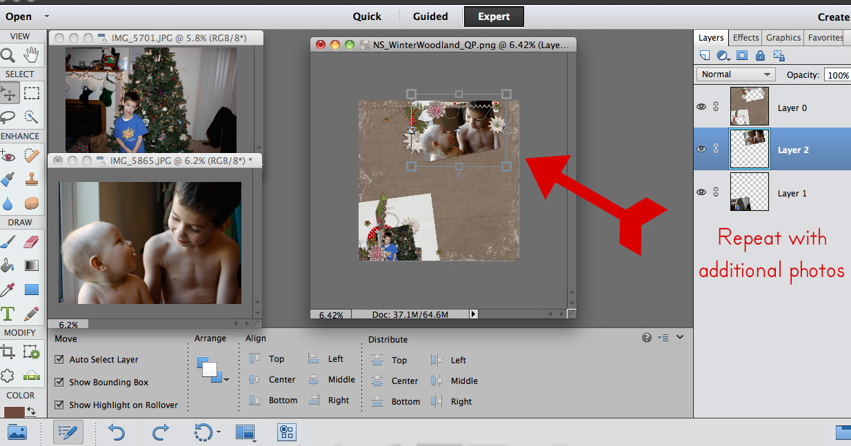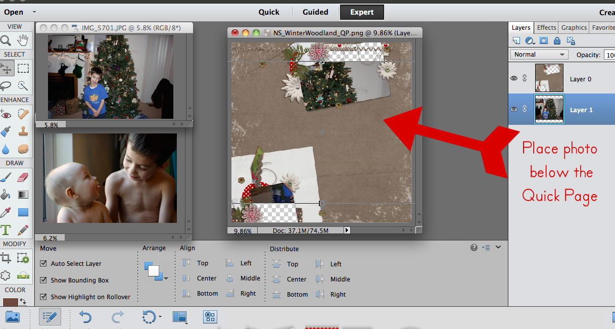 Next, choose the first photo and drag it onto your quick page. Then move it so it is under the quick page layer.
