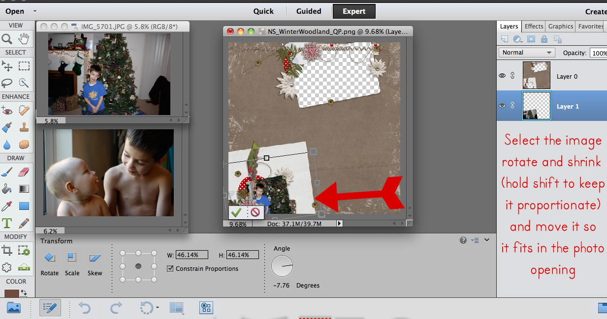 Let’s get started! First, you will want to open up your quick page and the photos you are using. The quick page I’m using today has spots for 2 photos.