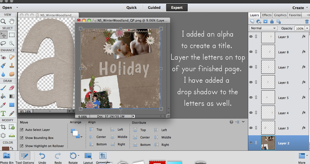 Give it a try, just for you, here is the Quick Page I used in this tutorial, it’s created with Winter Woodland by Nibbles Skribbles – which is part of theStudio Coordianted collection and is just $1 per pack until the 15th! Just click the image to download your gift!