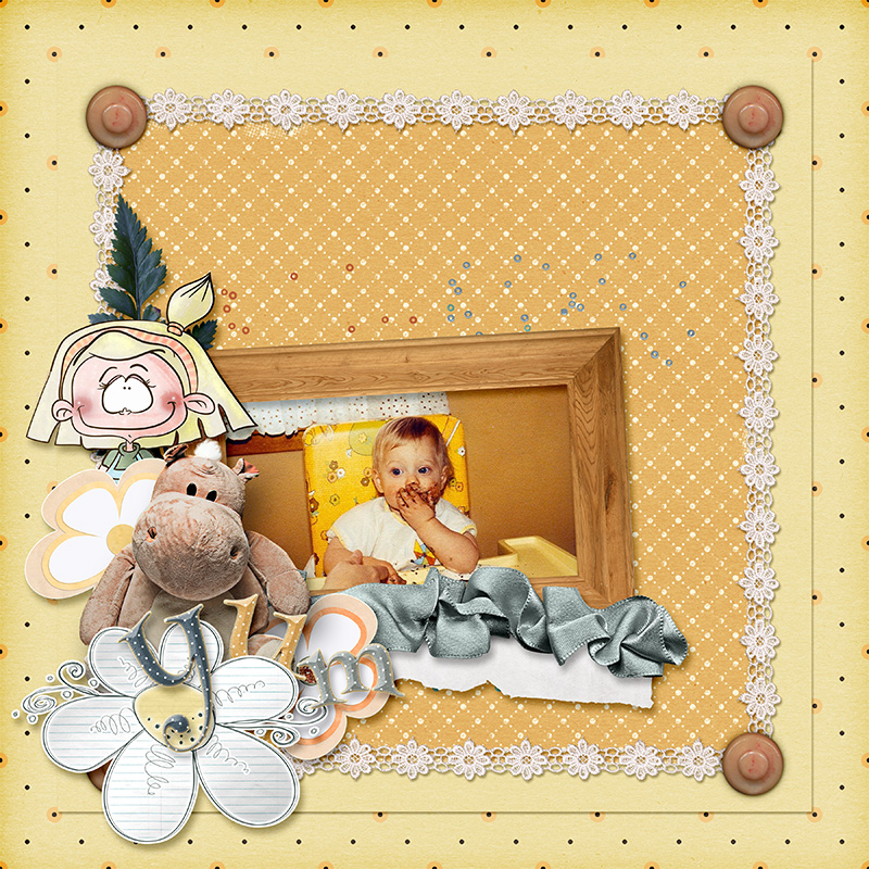 This adorable House Rules layout was created by Kabra. I love her “Yum” title!
