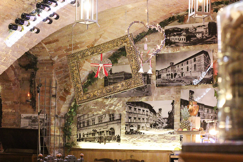 But of course! We followed our maître d’ through the scarce, crowded tables, quickly turning a corner and descending down a small, almost-hidden, staircase into the basement. Below street-level the restaurant expanded into a cavernous affair with multiple, themed, rooms branching off a main corridor. A refreshing, eccentric little haven hidden in the heart of Umbria, Storie Perugine was the find of the trip.