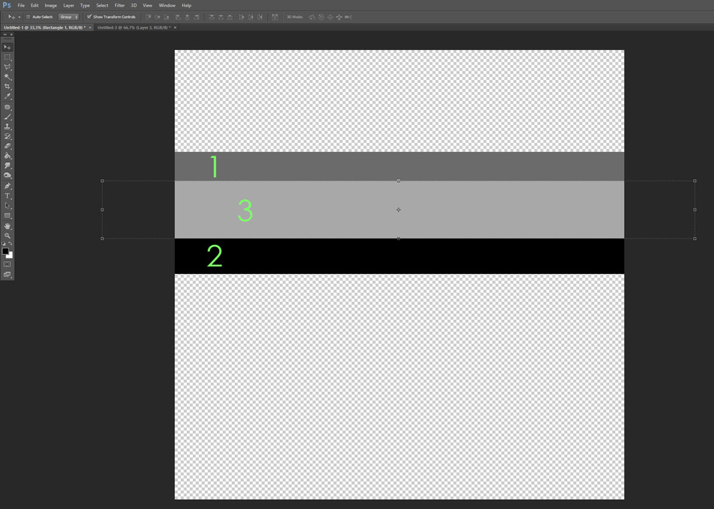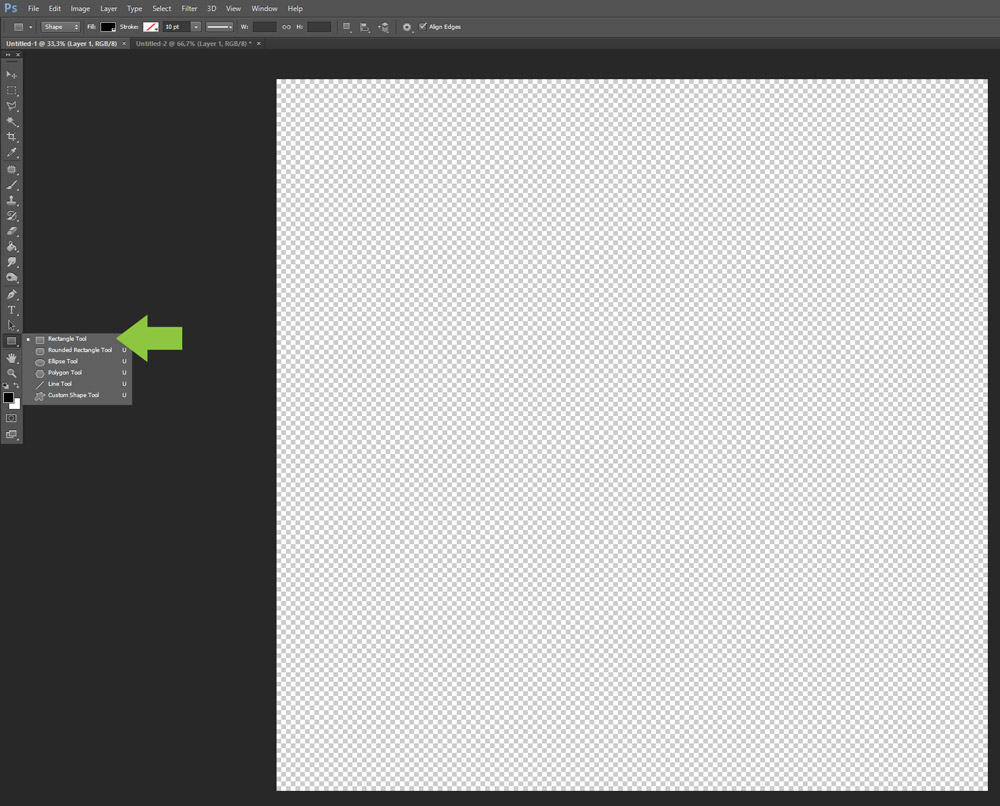 2. Make a rectangle shape on your canvas in the form of a strip, horizontally going outside the document bounds of your canvas. The color doesn’t really matter.