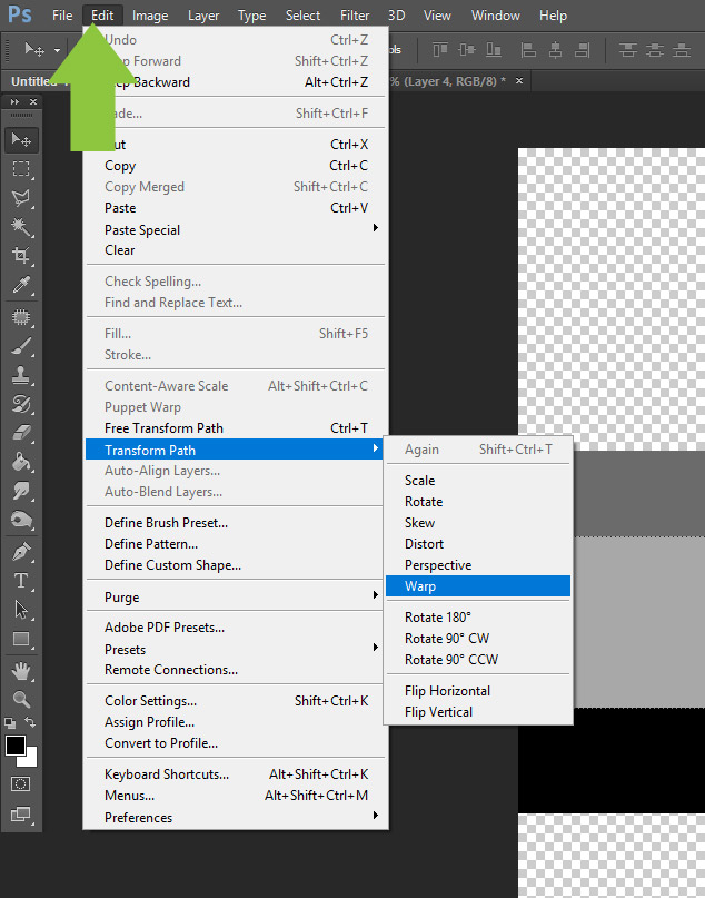 3. Go to Edit, choose Transform -> Warp