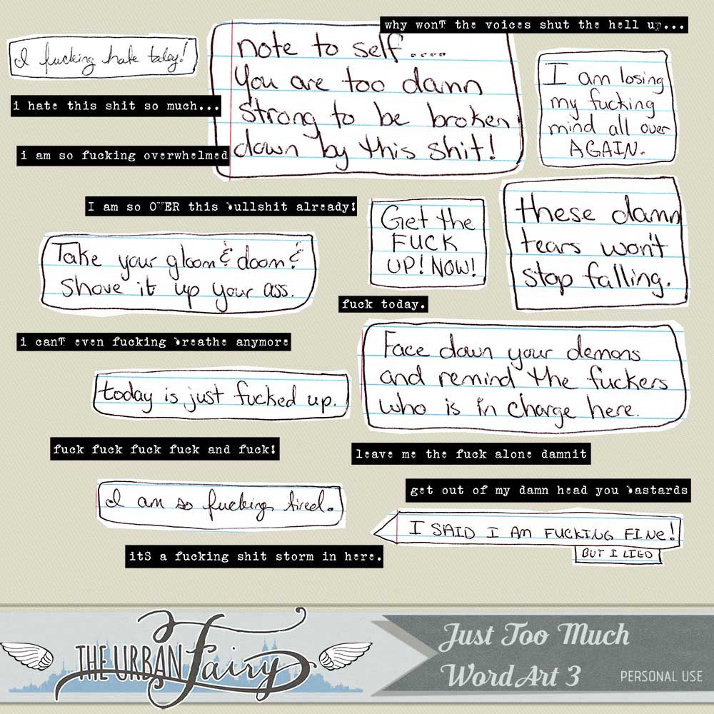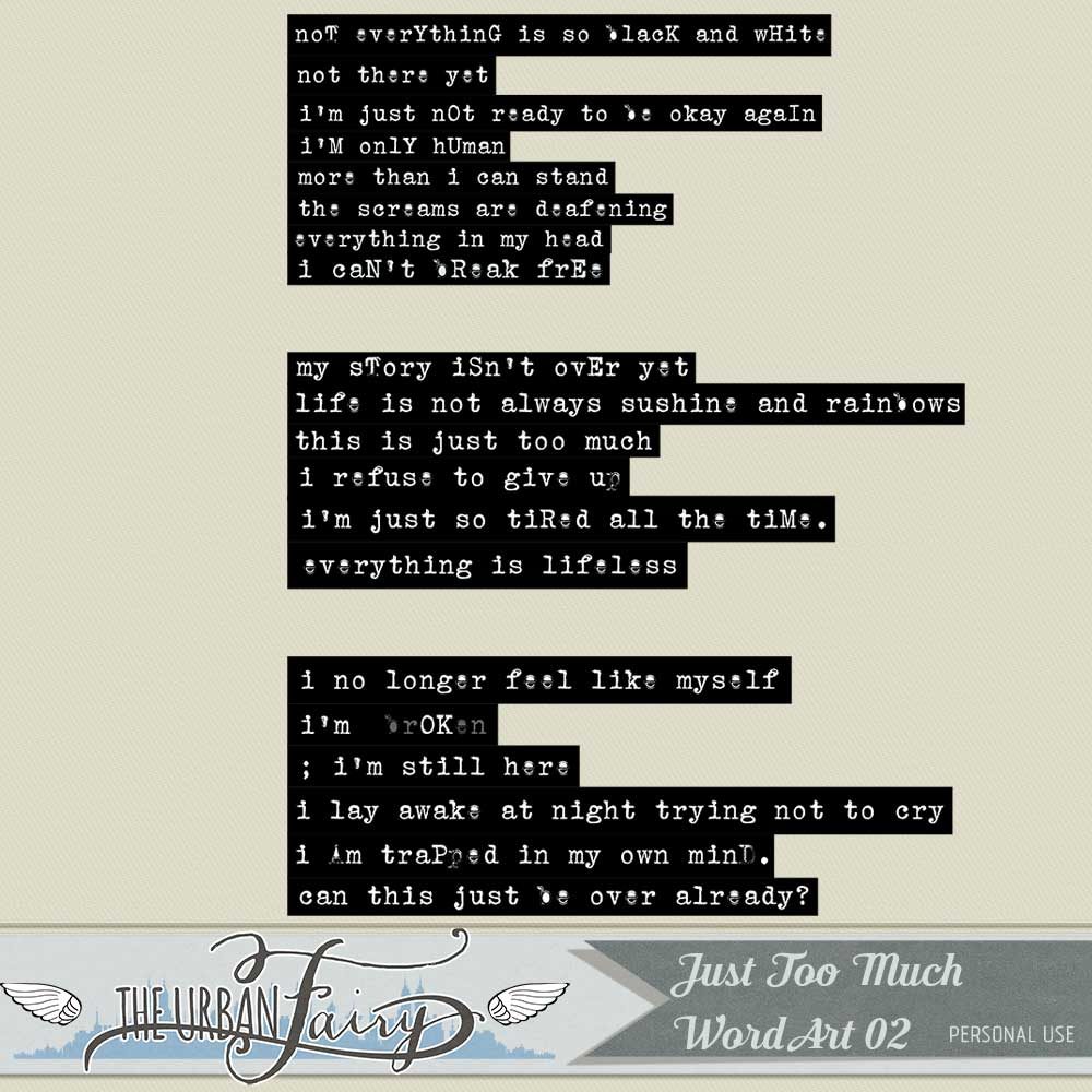 Just Too Much by The Urban Fairy is all about the daily struggles we face, especially now. It is a way to vent out your pains and frustrations using a form of therapy; just for you and your own personal space. Let it out in a digi scrappy way and maybe lift your burden just a little.