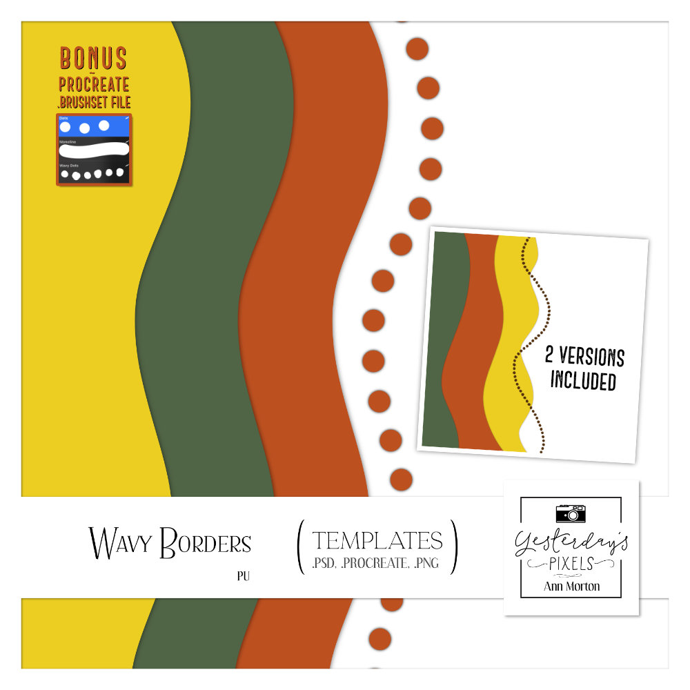 I love using Procreate. It’s easy to use, and honestly, it feels like the next best thing to painting on paper (without the mess). I also love layouts with curved borders. Elly wrote this post (with an awesome template giveaway!) about how to make beautiful vector borders in Photoshop. While Procreate doesn’t currently support making curves this way, it’s really easy to create a wavy, layered border with brushes. Keep reading for a link to a free template, as well as a Procreate brush set so you can make your own.