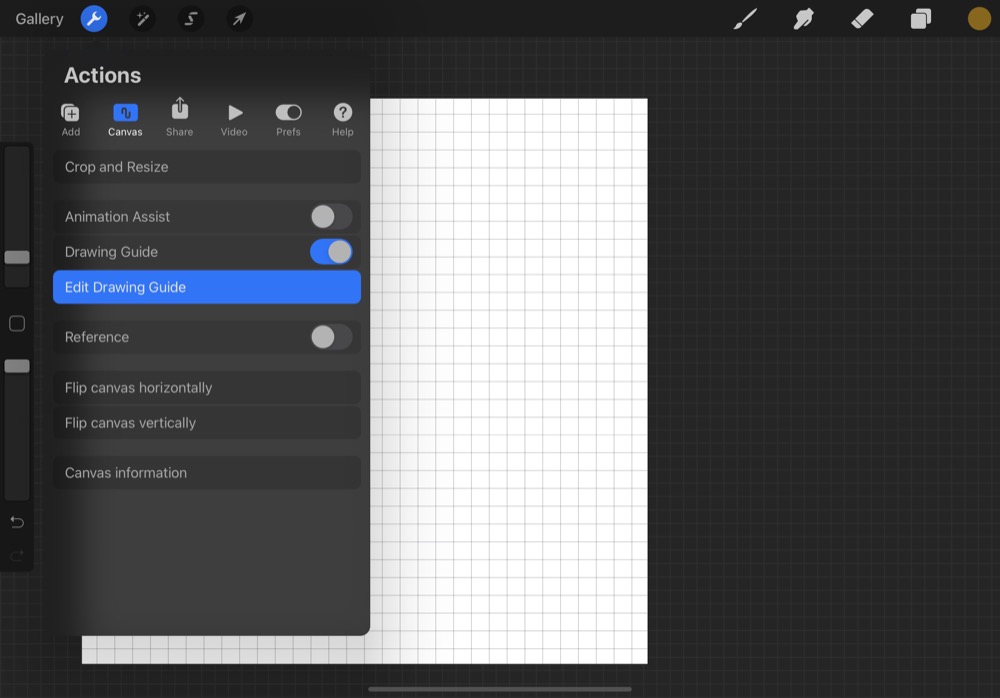 Let’s get started! You can turn on the Drawing Guide if it helps you create wavy lines. From the Actions menu, choose Canvas > Drawing Guide ON, then Edit Drawing Guide.