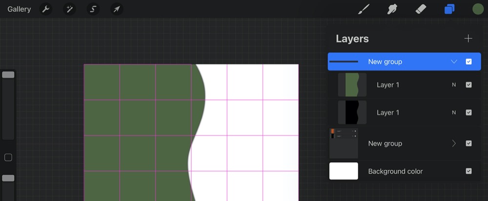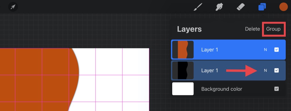 Now, I’ll group the wave and shadow layers. Select multiple layers by swiping right across each one, then choosing Group.