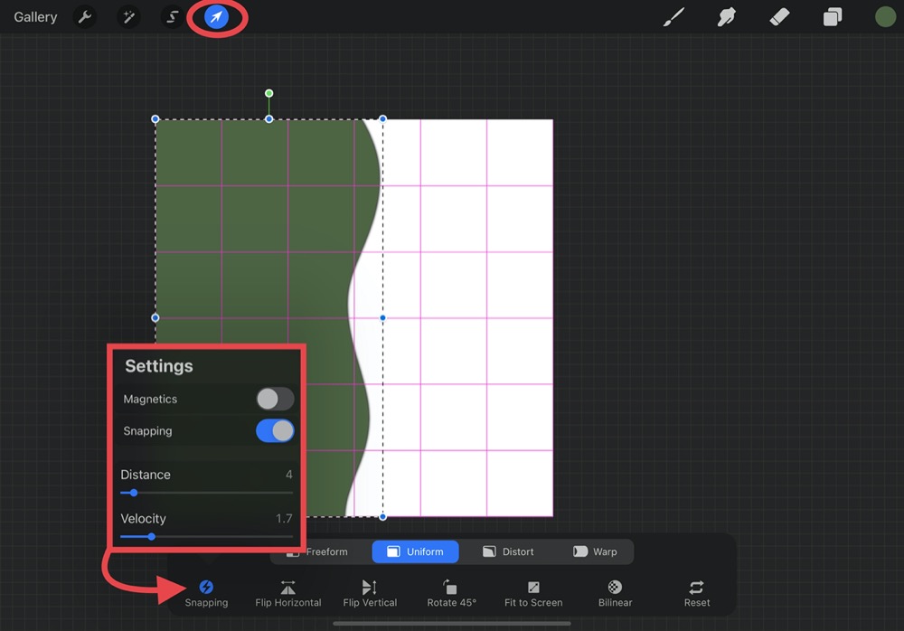 To offset the wave layer, I tap the Move tool. I suggest turning ON Snapping before moving the layers to help keep them aligned on the canvas.